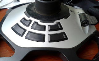Y en ocasiones, solo por diversión, uso una Extreme3DPro de Genius. Principalmente por los botones. Esta cosa tiene 12 botones programables, lo cual es muy útil para Revit. La fila lateral de 6 botones queda apenas para programarle las funciones de dibujo y modificación comunes. Lamentablemente, eso es lo que se puede aprovechar del Extreme3D. El joystick en si no he logrado ponerlo a funcionar como mouse, y dudo que sea muy útil hacerlo. Aunque talvez el joystick podría servir para hacer pan/zoom. Si logro descrifrarlo, les contaré.