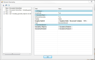 Muy bonito… pero, cómo se interpreta toda esa información? Qué es cada uno de los parámetros mostrados? Qué utilidad se le puede sacar a todo eso? Como mencionaba al inicio de este post, Revitlookup es una utilidad de diagnóstico, orientada sobre todo a programadores del API. El contenido de un parámetro como IsElementGeometry probablemente no tenga mucha utilidad para el usuario común y corriente que está haciendo un modelo. Pero si estamos haciendo un macro que requiera manipular un elemento, y vemos que se nos está generando un error al manipular una variable, aquí podemos darnos cuenta que existe un parámetro de la vista llamado IsElementGeometry, que puede ser la clave para solucionar nuestro problema. Similarmente podemos entender con RevitLookup que la geometría del objeto está contenida dentro de una clasificación que depende de las vistas activas, y ajustar nuestro código de acuerdo con eso.